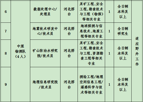 4)能滿足用人單位的招聘崗位要求,服從單位工作安排,認真遵守和履行單位的各項規(guī)章制度,身體素質(zhì)好,吃苦耐勞,能適應(yīng)野外工作。