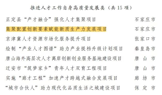 近日,河北省委人才工作領(lǐng)導(dǎo)小組辦公室發(fā)布《關(guān)于人才強冀工程2025年度重點人才項目立項的通知》,興冀人才公司申報的“集聚配置創(chuàng)新要素賦能新質(zhì)生產(chǎn)力發(fā)展”項目獲得立項批復(fù)。